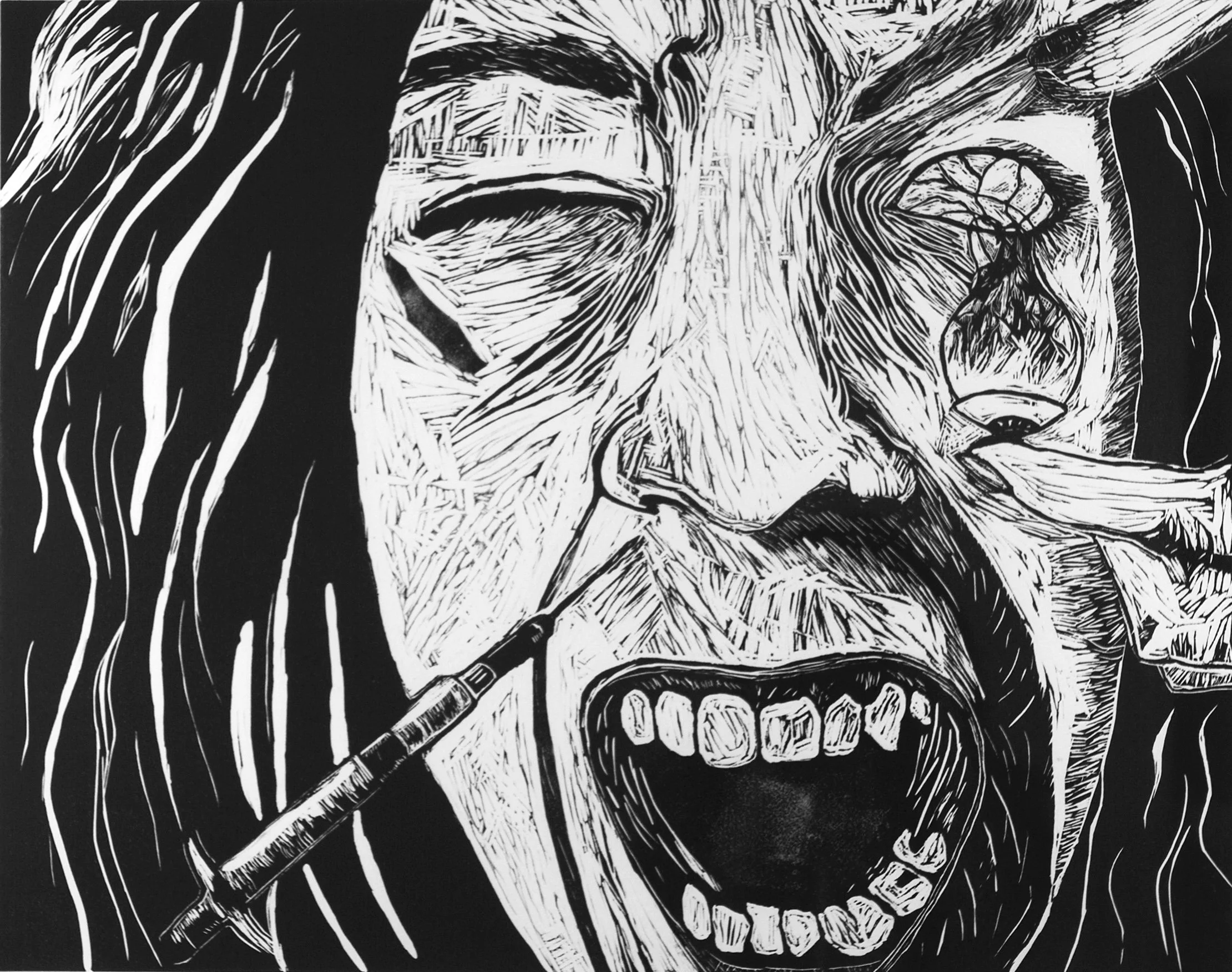 Fear, 2004, Woodcut print, 18 x 22.5 in, Paper 22.5 x 30 in