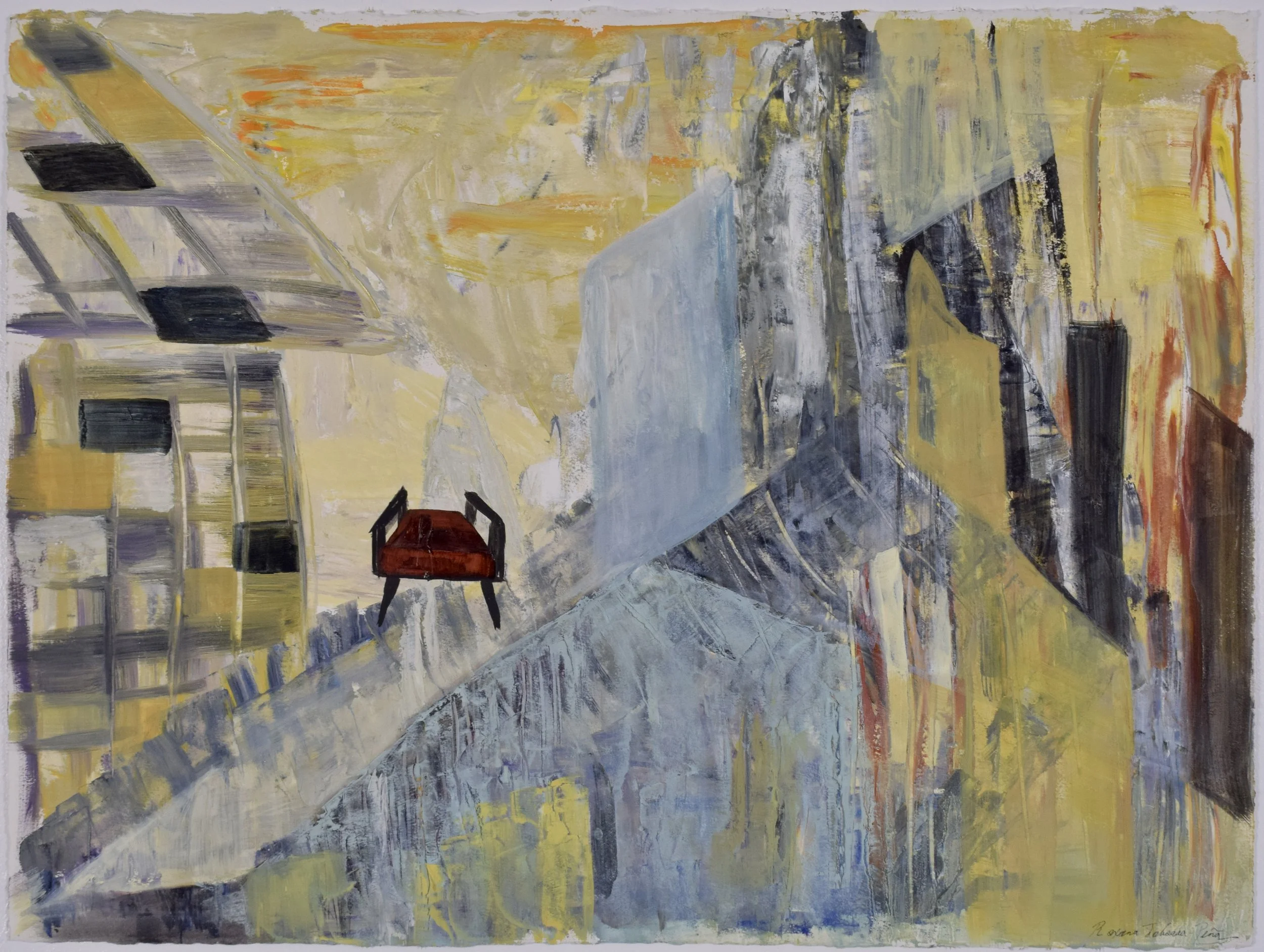 Chair Series: Pisco City, 2013-2020, Oil Paint on Arches Huile Paper 22 x 30 in