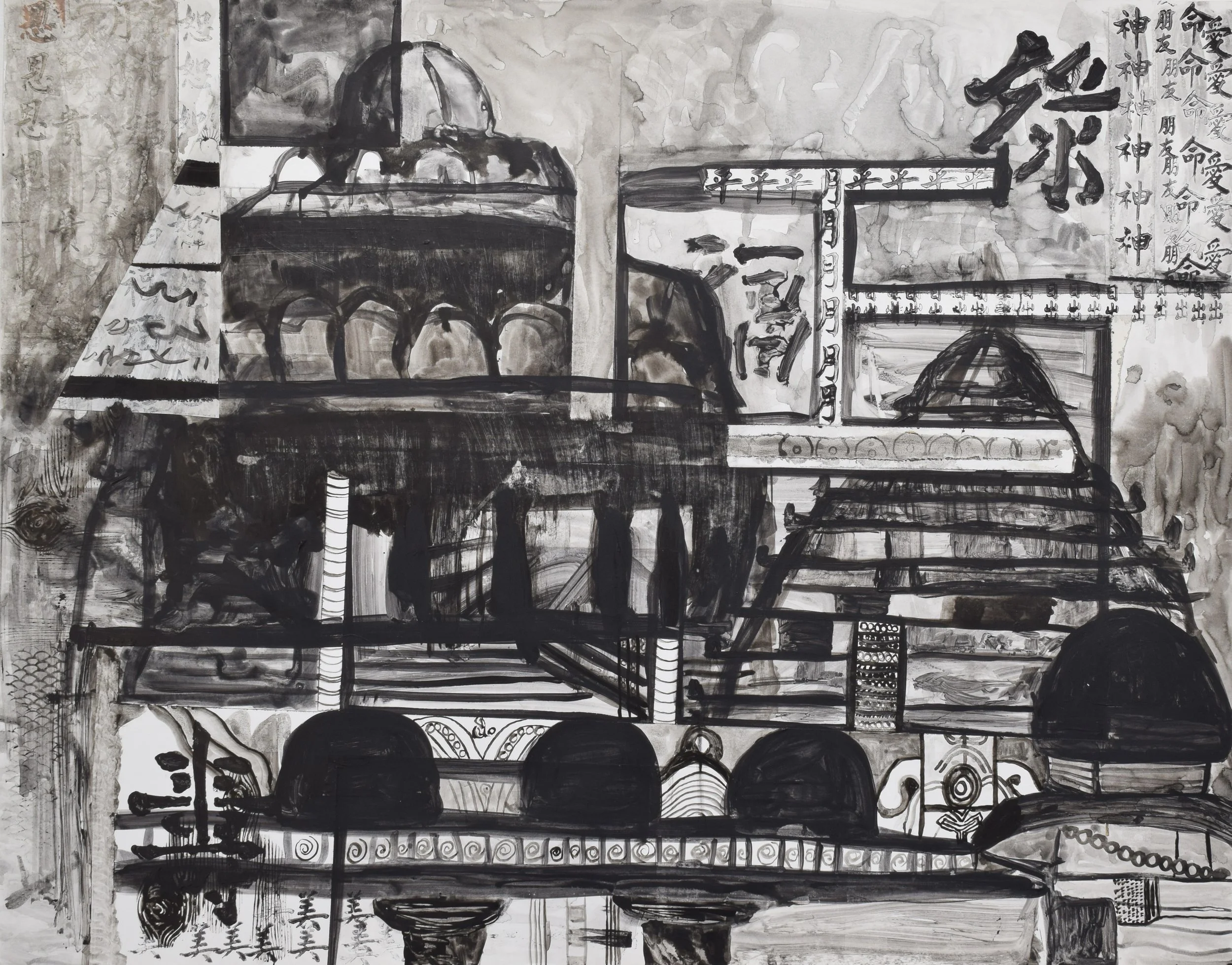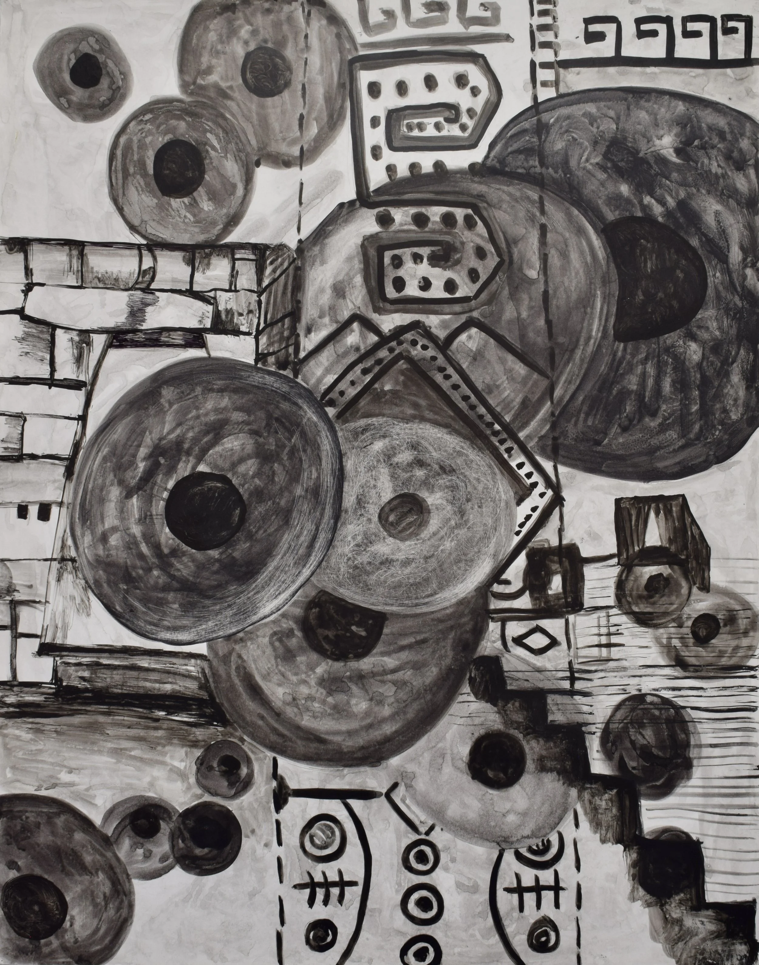 Where do I come from? 2013-2020, Acrylic paint, Ink, Watercolor, Collage on drawing paper, 19 x 24 in