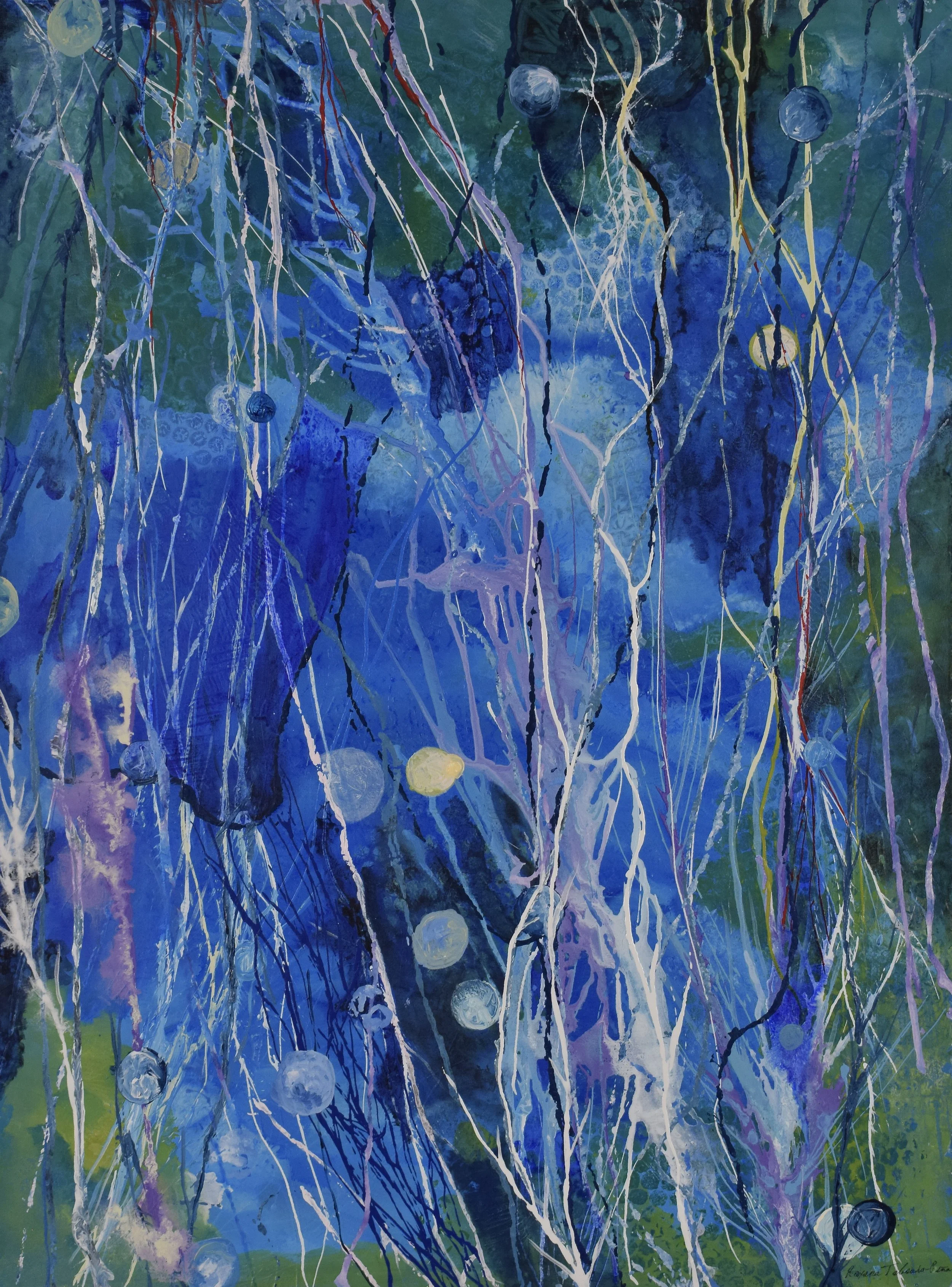 Nerve pain: Blue Confusion, 2023, Gouache, Watercolor pens, Acrylic pens, Oil paint pens 7.5 x 9 x 0 in