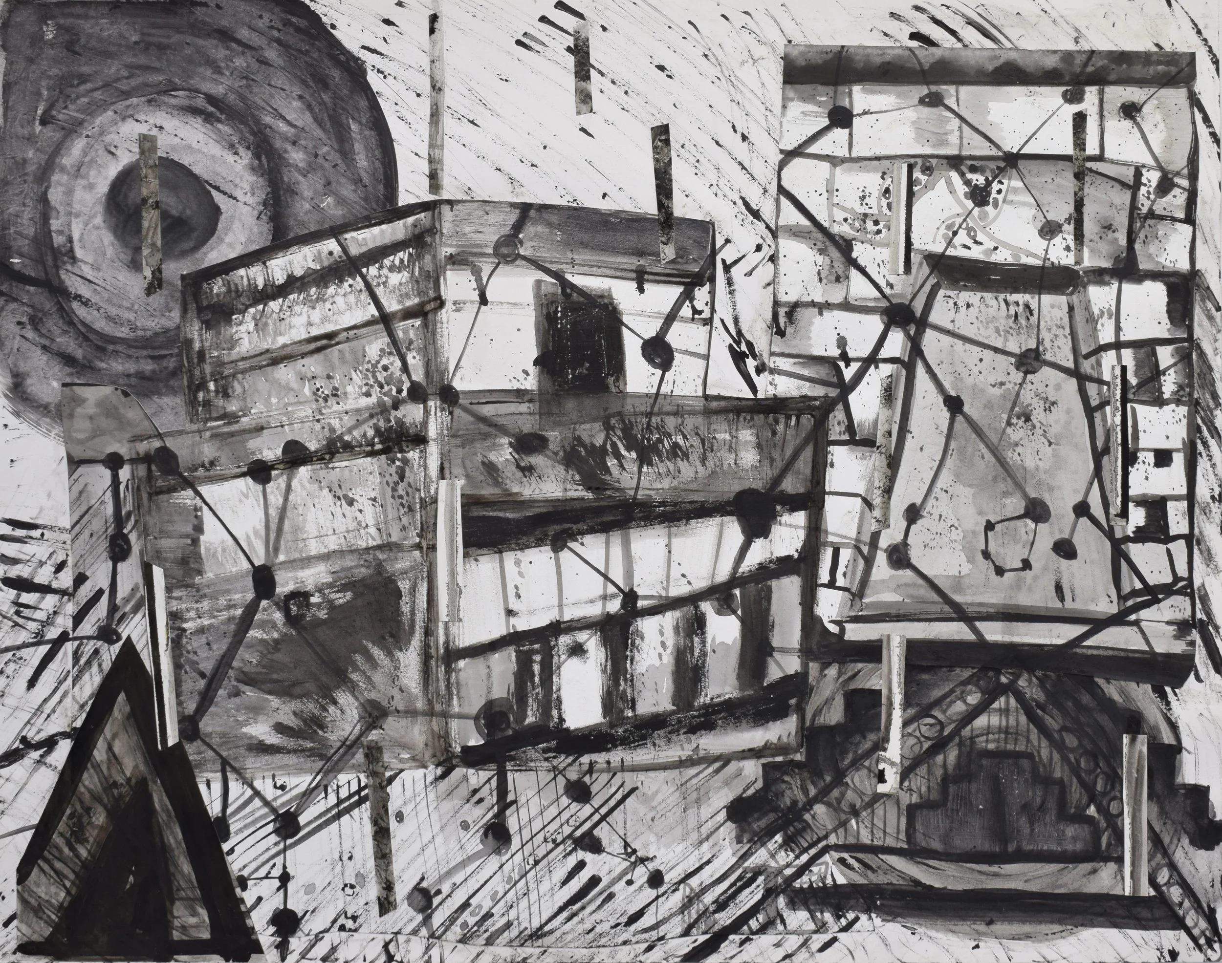 By cannibalizing other works, I create pieces with environments that combine shapes, one on top of another, using the negative space to express a feeling that I can get lost in. In some of the works it was not a conscious decision of the content but a reflection of the internal dialogue I was having with the work as I was assembling them.